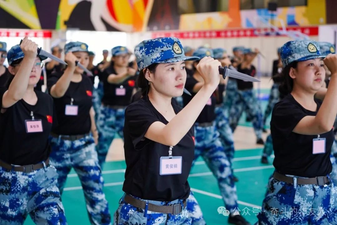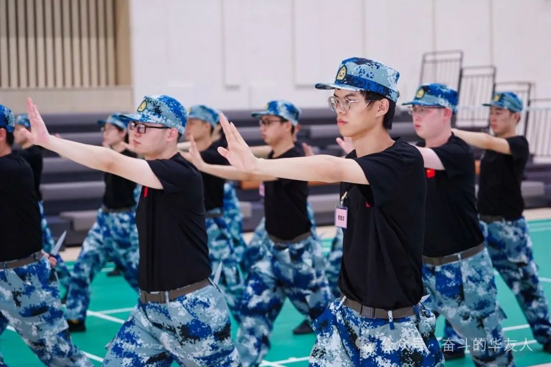 隊列訓練,動作有力,一舉一動都彰顯出華友人堅韌不拔的意志,響徹云霄的吶喊聲都傳遞著新人們奮進的決心。整齊的步伐,統一的動作,每一個細節都體現了團隊紀律的重要性。隊列訓練不僅鍛煉了學生們的身體協調性,磨練了意志,更培養了他們的團隊意識和遵守紀律的精神。