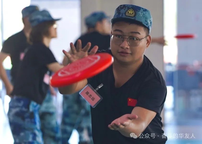 為了讓新星們快速融入團體,除了基礎的軍事訓練,訓練營還為學生們準備了豐富多樣的軍訓拓展活動。冰壺、飛盤、漢諾塔、擊鼓顛球、合力助塔和F1賽車等項目,既考驗了學生們的團隊協作能力,也鍛煉了他們解決問題的智慧和面對挑戰的勇氣。團隊比賽中,一次次精彩絕倫的表現,一陣陣熱烈整齊的掌聲,都展現出了他們的熱情和活力;團隊協作時,積極踴躍的發言,豐富多彩的設計,都閃耀著華友新星們的智慧和創意。