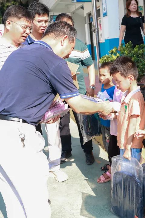 捐贈儀式上,華友控股集團副總裁黃孔森告訴小朋友們要從小樹立遠大理想,從小養成優良品德,好好學習、天天向上、回報家鄉,共同建設鋰電小鎮。
