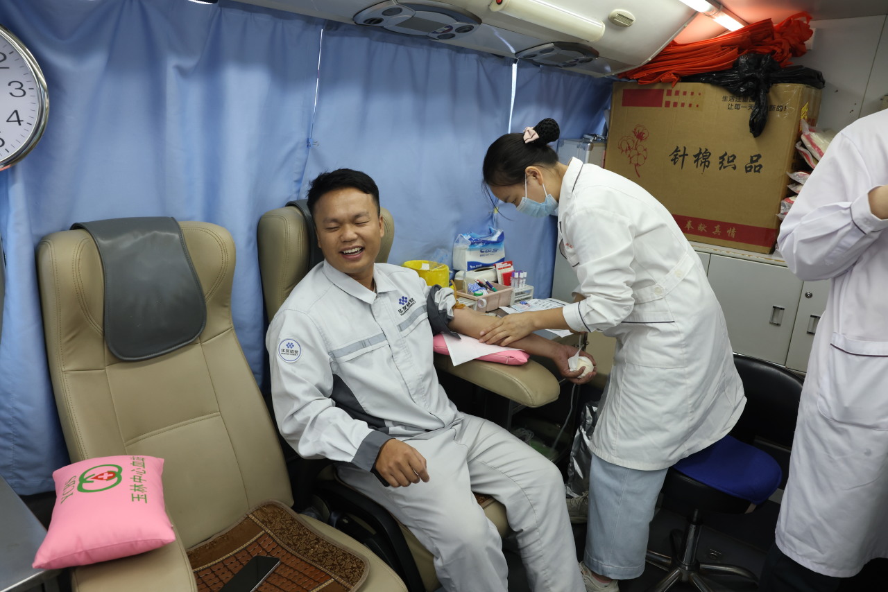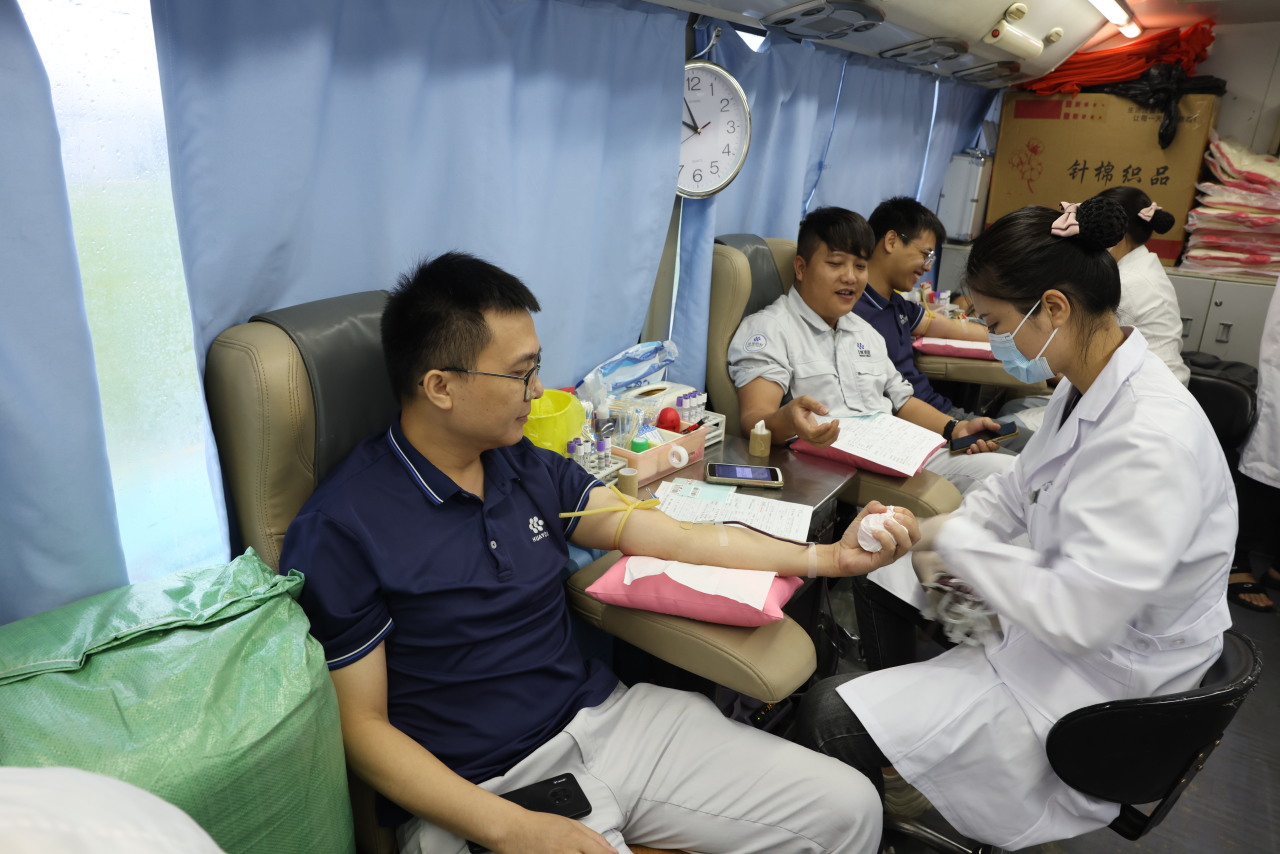 早上9點,報名參加獻血的員工自行來到獻血車。盡管臺風天氣帶來風雨,大家依舊熱情不減,井然有序地排隊登記、接受健康檢查、進行血液采集。現(xiàn)場既有多次獻血的“老將”,也有首次獻血的“新兵”,每位志愿者都用行動詮釋了愛心與社會責任。