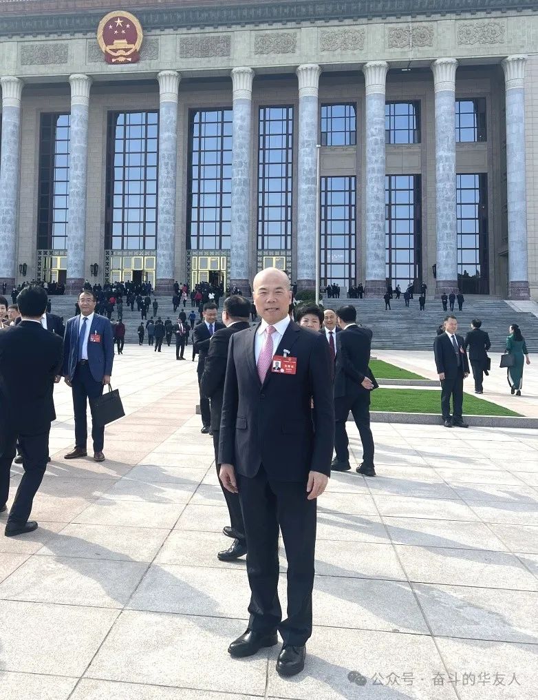 ▲全國人大代表、華友鈷業董事長陳雪華履職參會。圖為陳雪華董事長在人民大會堂前。