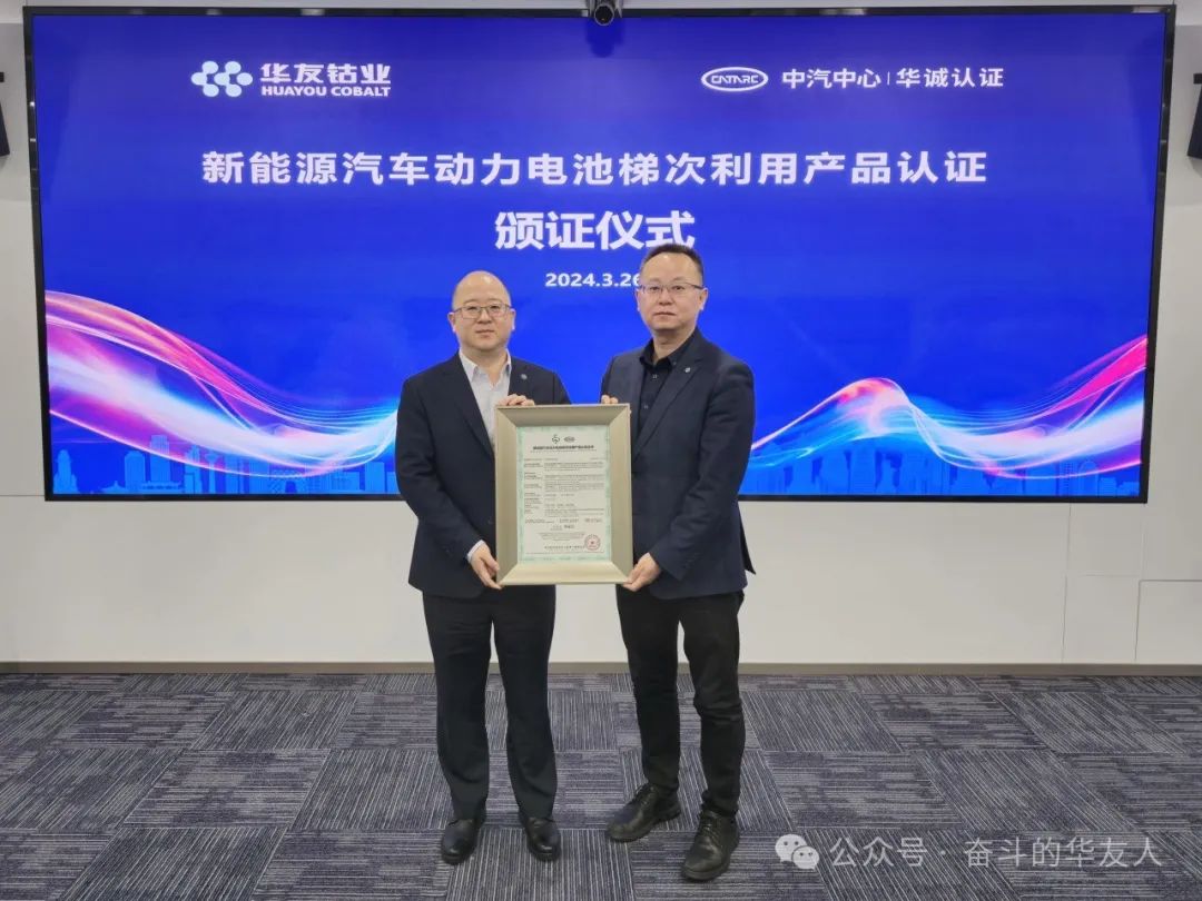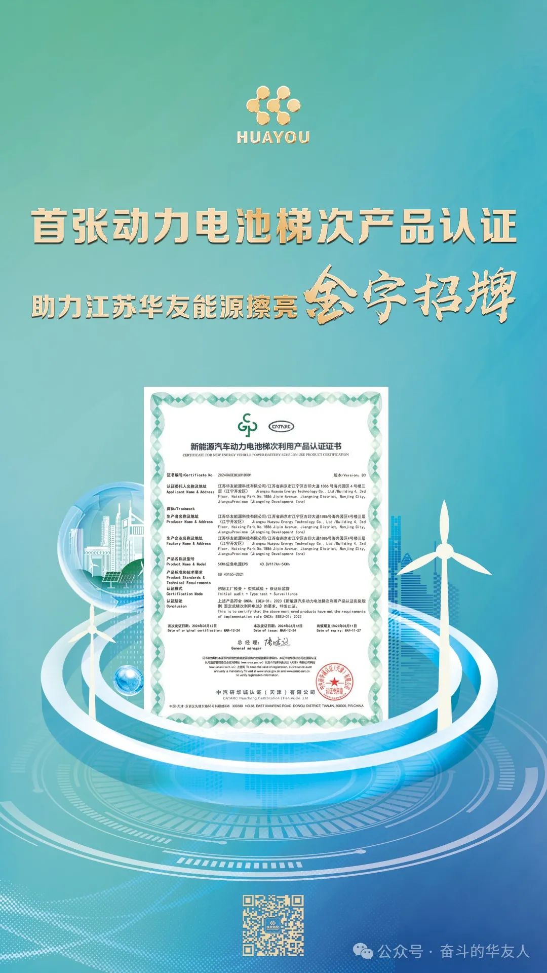首張動(dòng)力電池梯次產(chǎn)品認(rèn)證助力江蘇華友能源擦亮“金字招牌”