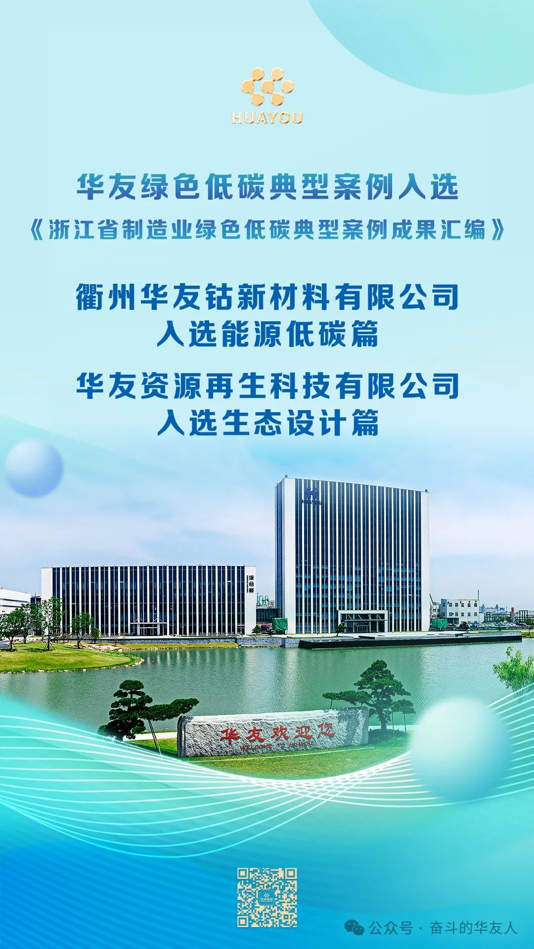 近日,浙江省經信廳發布了《浙江省制造業綠色低碳典型案例成果匯編》,圍繞能源低碳、循環利用、清潔生產、生態設計、工業節水等方面,遴選梳理形成 40 個具有一定示范引領作用的典型案例。衢州華友鈷新材料有限公司(以下簡稱“華友鈷新”)和華友資源再生科技有限公司(以下簡稱“資源再生”)分別入選能源低碳篇和生態設計篇的典型案例。