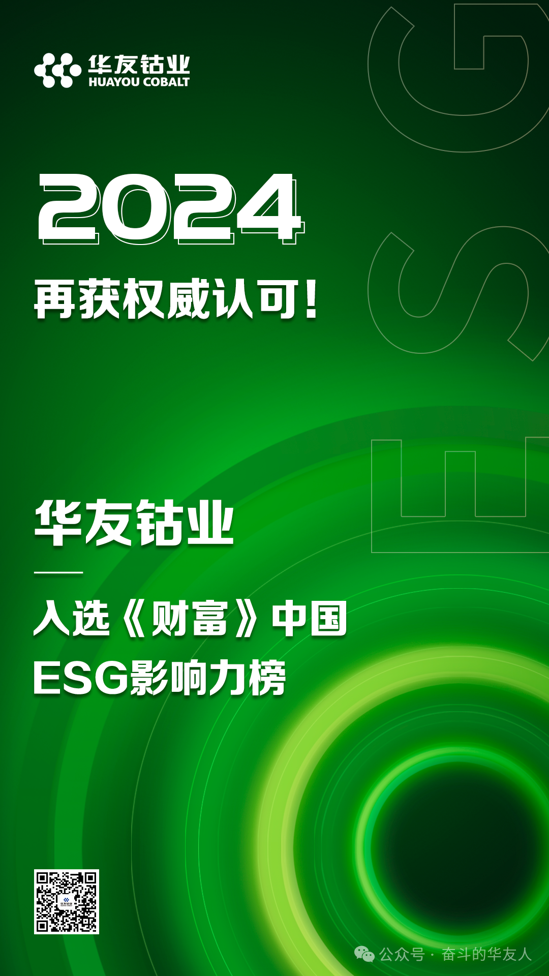再獲權(quán)威認(rèn)可!華友鈷業(yè)入選2024年《財(cái)富》中國ESG影響力榜