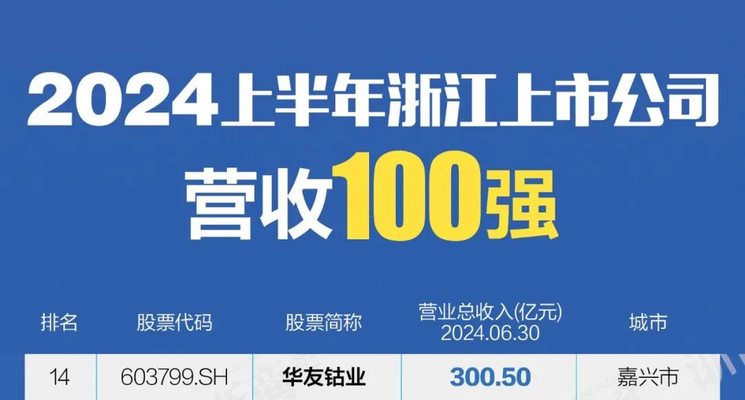 近期,浙江709家上市公司發布上半年業績。8月31日,浙商雜志發布2024上半年浙江上市公司營收100強、凈利潤100強榜。華友鈷業憑借300.50億元的營業總收入及16.71億元的凈利潤,榮登榜單第14位、第16位。