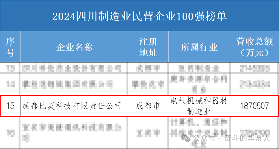 10月29日,2024四川民營企業100強發布會在自貢舉行。會上,四川省工商聯發布“2024四川民營企業100強”榜單,此外還首次發布“2024年四川制造業民營企業100強”、“2024年四川服務業民營企業50強”,華友成都巴莫公司位列“2024年四川民營企業100強”榜單第19名、“2024年四川制造業民營企業100強”榜單第17名,連續三年登榜。