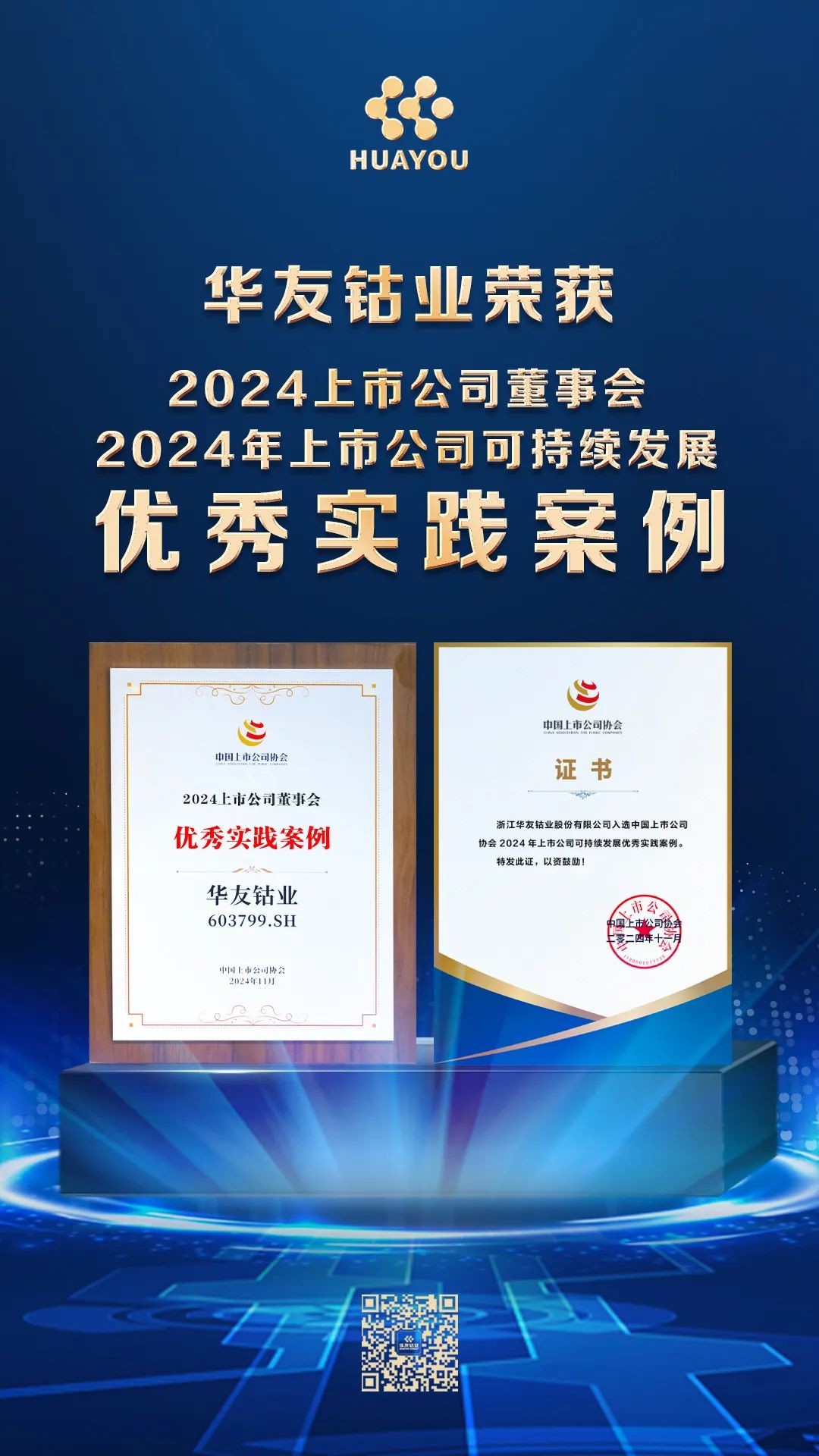 11月22日,中國上市公司協會第三屆理事會第五次會議及2024上市公司可持續發展大會在京召開,會議期間分別舉辦了2024董事會最佳實踐案例及2024上市公司可持續發展最佳實踐案例發布儀式。華友鈷業成功入選“2024年上市公司董事會優秀實踐案例”和“2024年上市公司可持續發展優秀實踐案例”,體現了中國上市公司協會、資本市場對公司董事會履職能力與可持續發展實踐能力的高度認可。