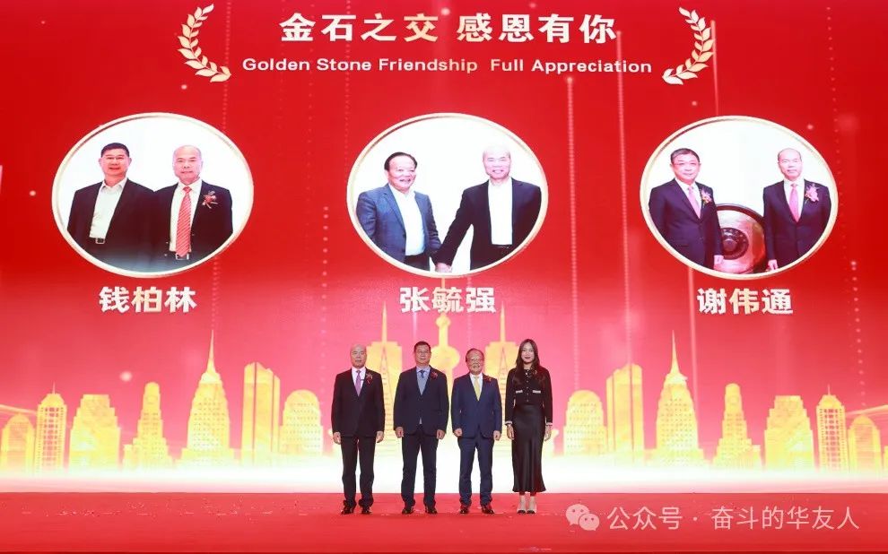 在“華友創(chuàng)業(yè)三十周年金石之交 感恩有你”環(huán)節(jié),陳雪華董事長向中匯(浙江)稅務(wù)師事務(wù)所有限公司財(cái)務(wù)總監(jiān)錢柏林、大山集團(tuán)董事長謝偉通、振石控股集團(tuán)有限公司董事局主席張毓強(qiáng)贈(zèng)牌,謝偉通進(jìn)行視頻致辭,共同回顧和見證這段歷久彌堅(jiān)的深情厚誼。