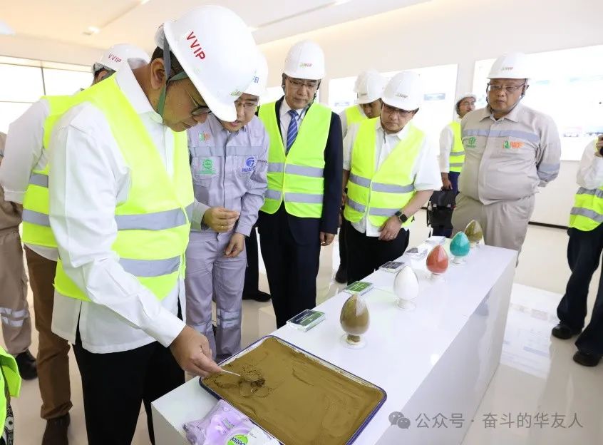 Rosan部長一行先后參觀了華飛項目的控制中心、高壓酸浸車間及華能項目的展廳、質(zhì)量檢測中心、主控中心和生產(chǎn)車間,詳細了解了華友印尼緯達貝鋰電材料產(chǎn)業(yè)一體化綠色制造基地各項目的工藝流程、技術(shù)應(yīng)用、生產(chǎn)規(guī)模、產(chǎn)能產(chǎn)量等最新進展以及ESG建設(shè)等方面的情況。